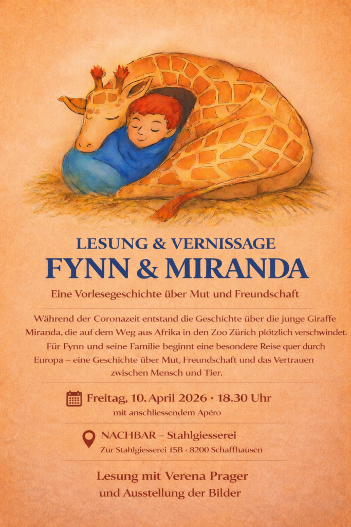 Vor sechs Jahren, zu Beginn der Corona-Quarantäne, begann ich für meine Enkel eine Geschichte zu schreiben und zu malen – in Kapiteln, vorgelesen über WhatsApp. So trat Miranda, die junge Giraffe, in mein Leben. Und mit ihr Fynn, ein Junge mit einem besonderen Gespür, eine Menschenfamilie, tierische Freunde – und eine Geschichte über Mut, Freundschaft und Vertrauen.